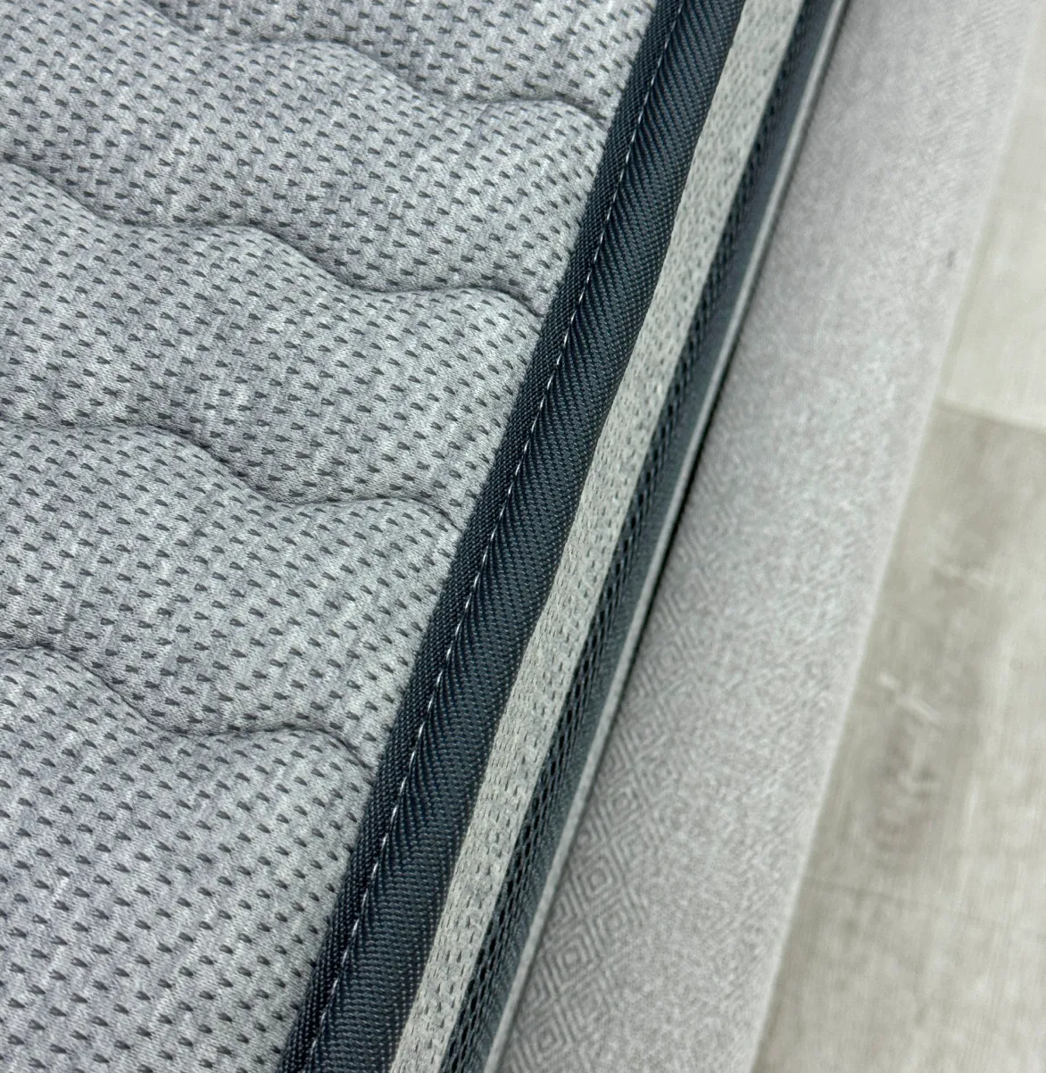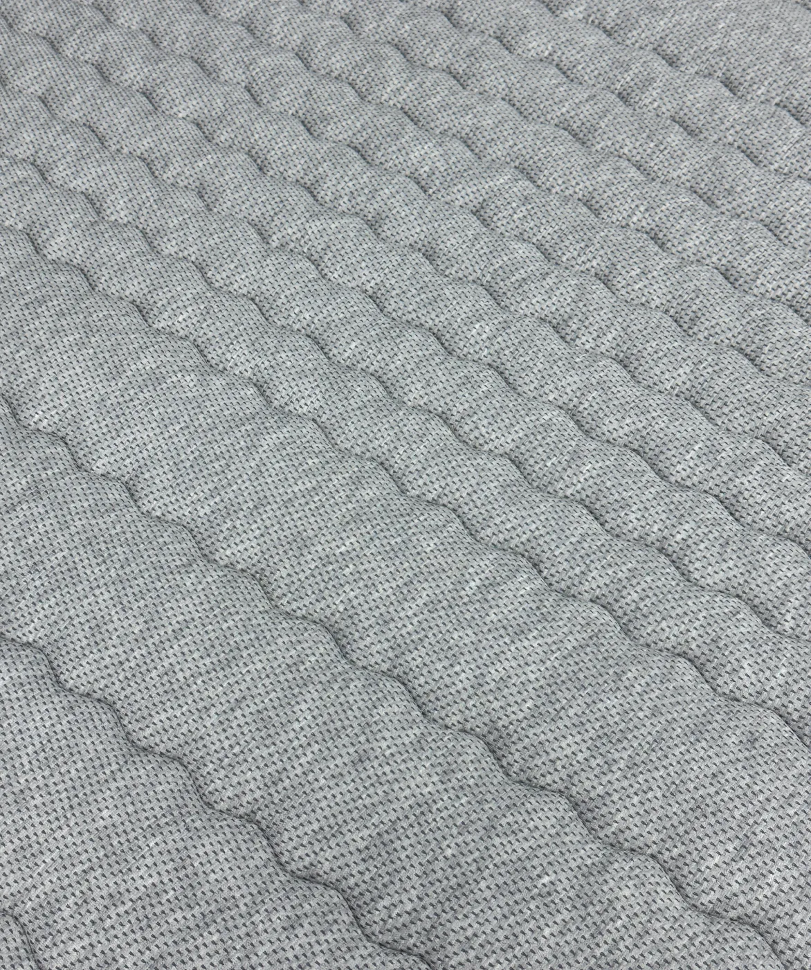 Трикотаж «PESCODY» - Премиальный меланжевый итальянский трикотаж с натуральными волокнами в трендовом приятном сером цвете. Благодаря своей расцветке ткань смотрится стильно и более неприхотлива к незначительным загрязнениям. Натуральные смесовые нити в составе способствуют более эффективному тепло обмену и обладают высокой гигроскопичностью, что обеспечивает комфортный микроклимат спального мест